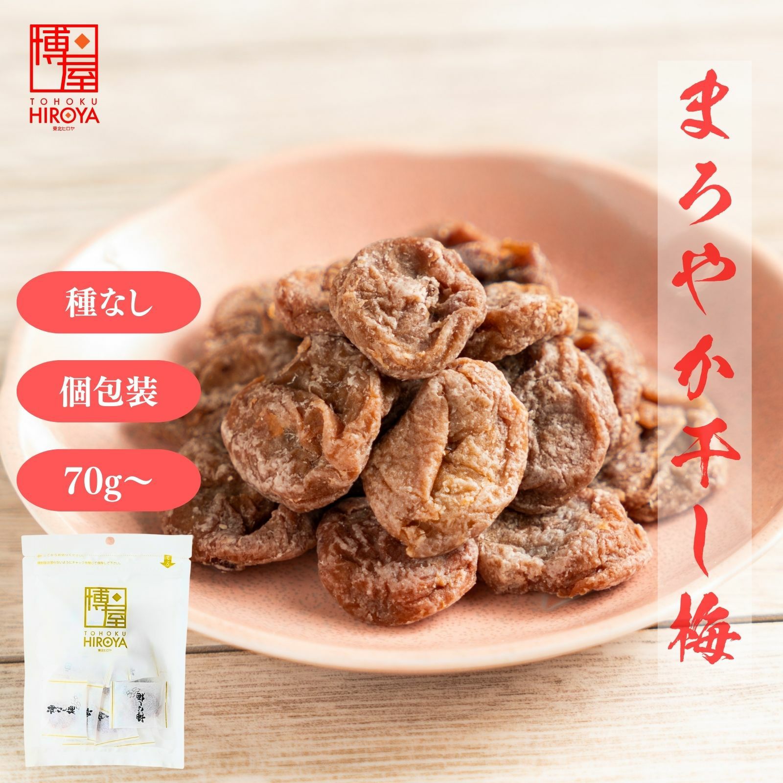 おやつに、お茶請けに。お菓子感覚で手軽に食べられるやわらかい干しうめです。暑い夏には熱中症予防、熱中症対策の塩分補給にも。 まろやか 種なし 干し梅 個包装 70g x 1袋~ 送料無料 チャック付き保存袋 ¥ 798 税込 〜 ¥ 税込 詳細を見る お気に入り登録