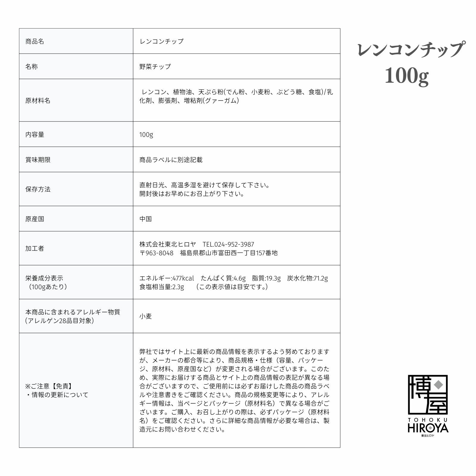 レンコンチップ 100g入り
