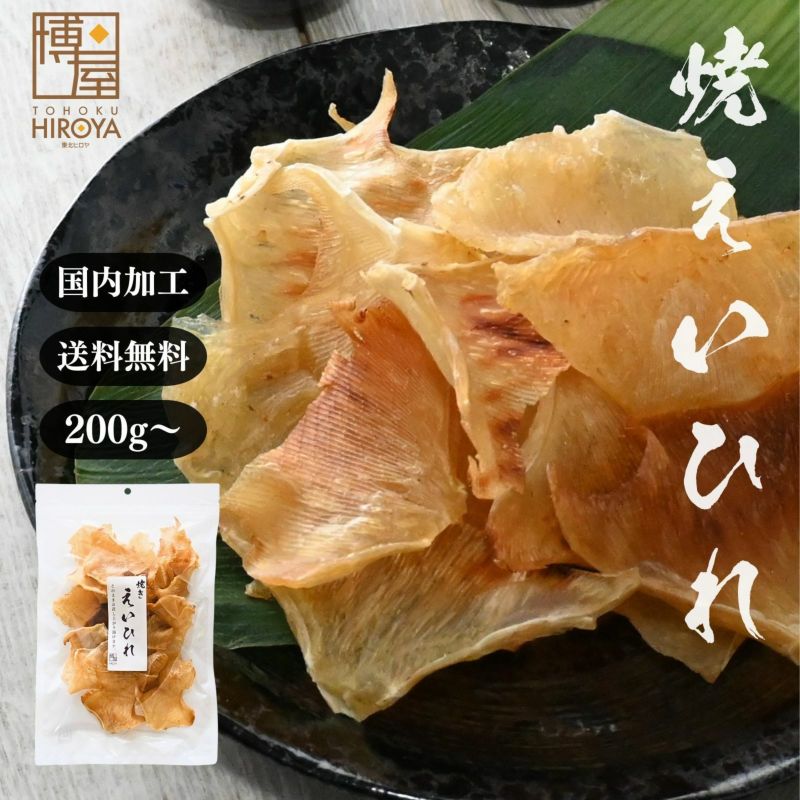 えいひれみりんを食べやすいように軽く焙り焼きにしました。 お酒のお供にピッタリです。 そのままでも美味しくお召し上がりいただけますが、トースターなどで軽く焼きますと、一層食べやすく、焼きたての風味をお楽しみいただけます!