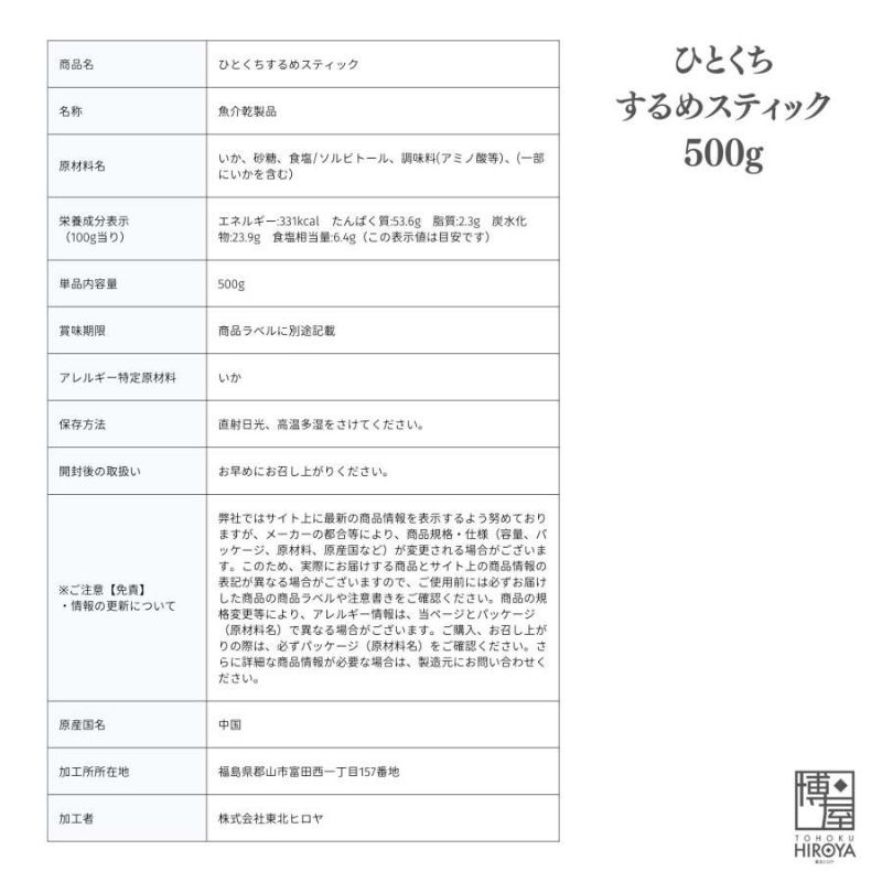 ひとくちするめスティック500g入り