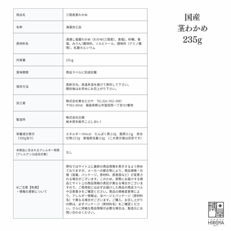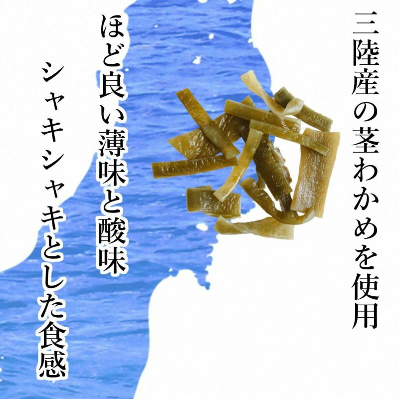 三陸産の茎わかめを食べやすいように個包装にしました。 ほど良い塩味と酸味、そしてシャキシャキとした食感が絶妙です! 低カロリーで食物繊維が豊富な茎わかめは、ダイエットにも最適です。ビールのおつまみに、お子様のおやつに、お茶うけに、ダイエットにと、ご賞味ください!