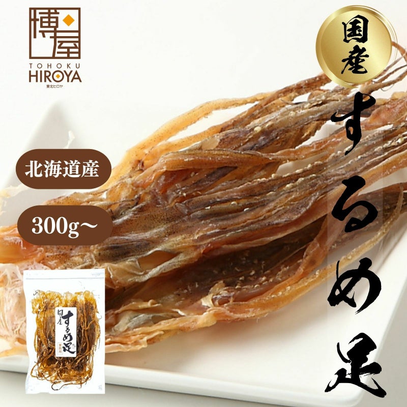 噛むほどに自然なイカの旨みが楽しめる北海道産スルメイカの足(げそ)です。 北海道産 するめ足 Mサイズ 300g x 1袋~