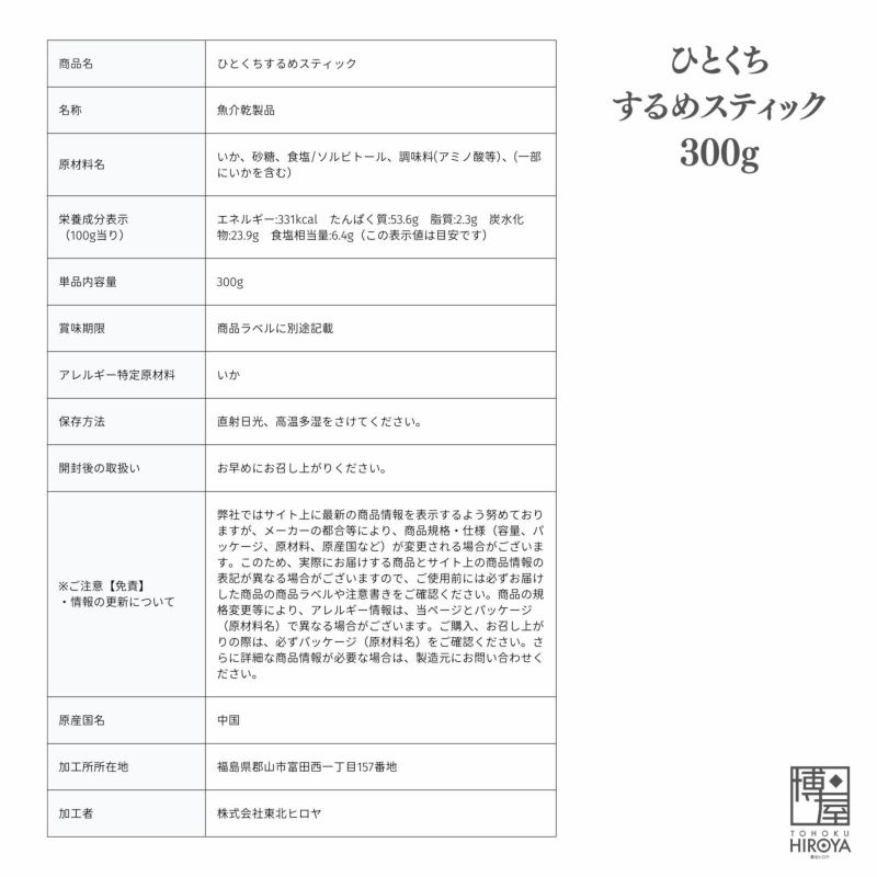 ひとくちするめスティック300g入り