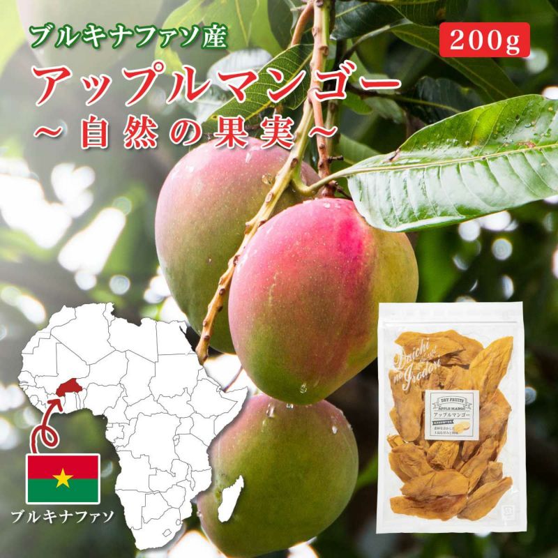 ブルキナファソ産無農薬栽培のアップルマンゴーを使用し、砂糖・香料・着色料不使用で、安心してお楽しみいただけます。ヨーグルトと合わせたり、スイーツの材料にも◎ ドライフルーツ アップルマンゴー 200g x 1袋