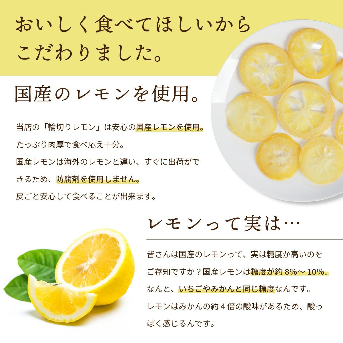 南信州菓子工房原料使用。酸っぱさ控えめ、半生でやわらかい新食感です。防腐剤・ワックス不使用の新鮮な国産レモンを使用しているので、皮ごと安心してお楽しみいただけます。 ドライフルーツ 国産 輪切り レモン 500g 国産 送料無料 チャック付き保存袋 ¥ 4,598 税込 カートに入れる お気に入り登録
