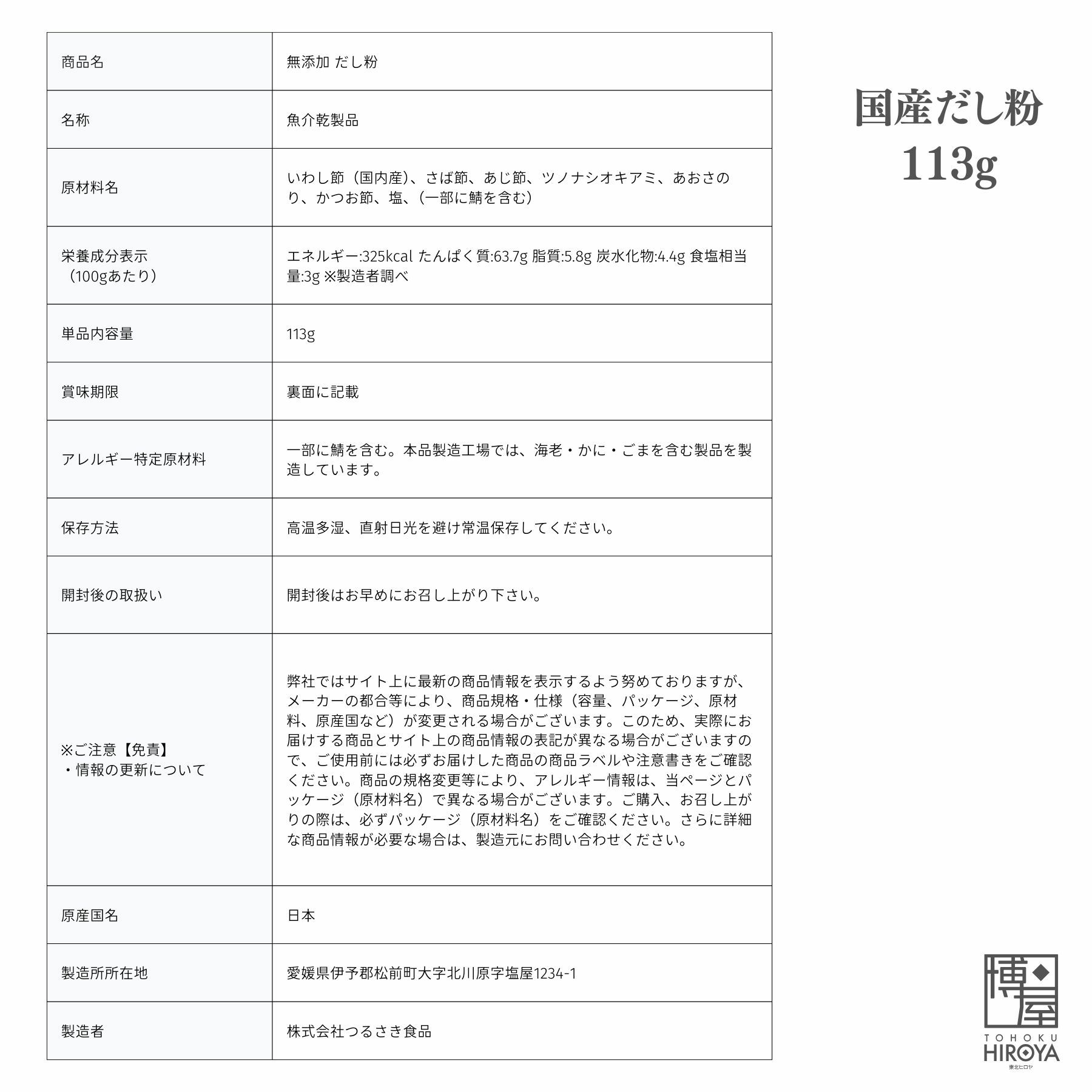 海の栄養豊富!国産のいわし節・さば節・あじ節・オキアミ・青さのり・かつお節・塩のみを使用した無添加のだし粉です。 国産 無添加 だし粉 113g x 1袋~ 国産 送料無料 ¥ 728 税込 〜 ¥ 税込 詳細を見る お気に入り登録
