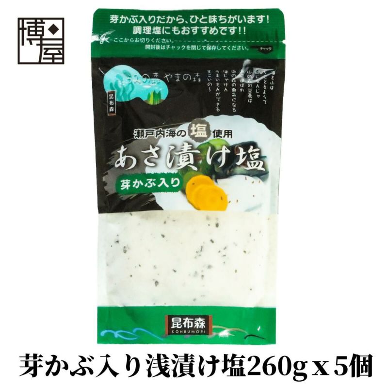誰でも簡単!あさ漬け名人! たった1時間で、あっという間に美味しい漬け物が完成! 手軽にぱっと漬けることが出来て、とってもおいしい「浅漬け用の焼き塩」です。 瀬戸内海の塩使用。芽かぶ入りだからひと味ちがいます。 芽かぶと一緒に唐辛子も入っておりますので、ピリリとした仕上がりになります。 保存に便利なチャック袋入り!調理塩にもおすすめです。