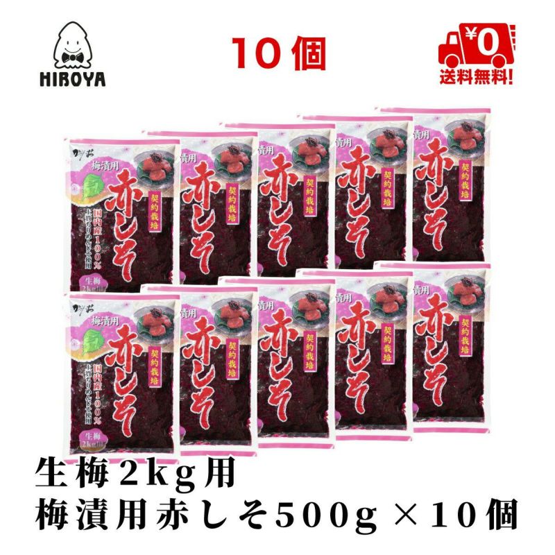 愛知県・神奈川県産、契約栽培の上質なちりめんじそ100%!自家製梅干しが上手に出来上がります。「しょうが漬け」「みょうが漬け」等にも◎ 国内産 赤しそ 梅漬用 梅干し用 もみしそ 500g x 10袋