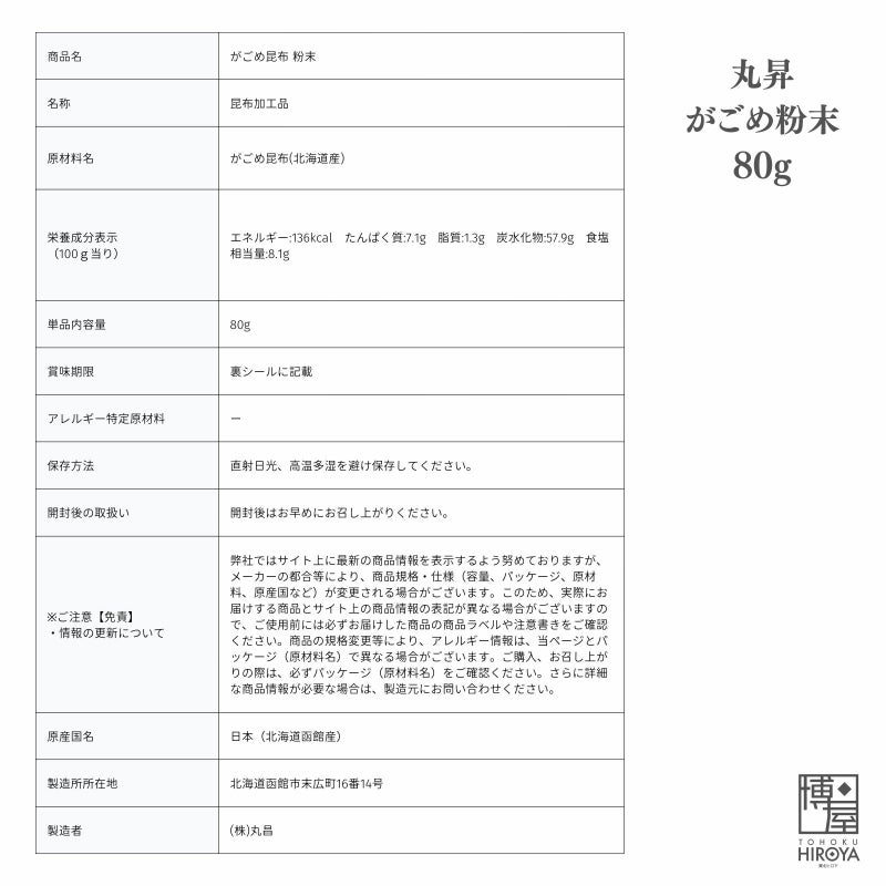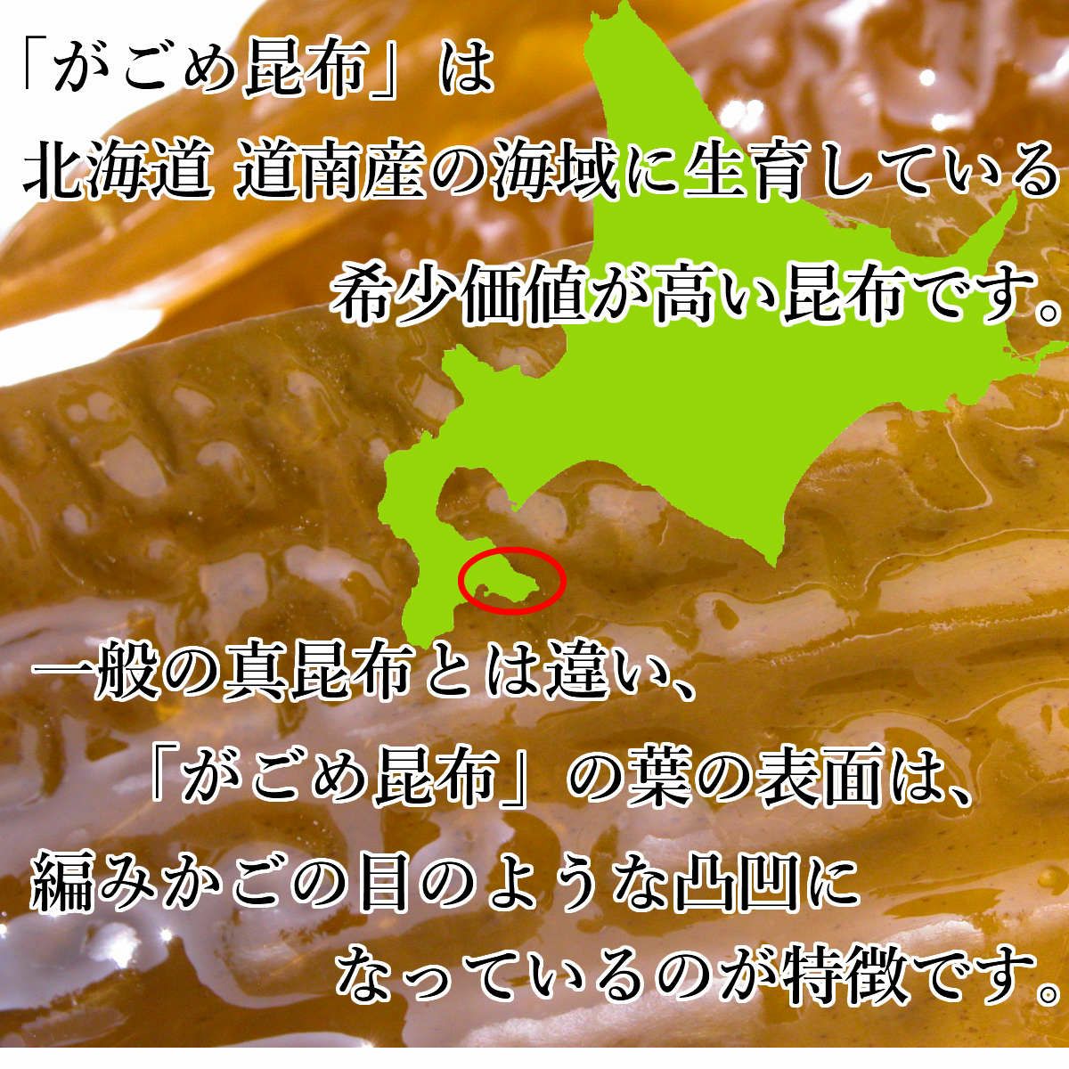 北海道函館で採れる納豆のようにネバネバした「がごめ昆布」を食べやすいように細かく刻み、微粒タイプにしました。 煮物や炒め物、サラダや麺類の具剤として幅広くご利用いただけます。 ※がごめ昆布とは、北海道南部の東海岸、津軽海峡の沿岸にのみ分布する昆布です。 昆布の表面にある模様がカゴの目に似ているところから「がごめ昆布」と呼ばれています。