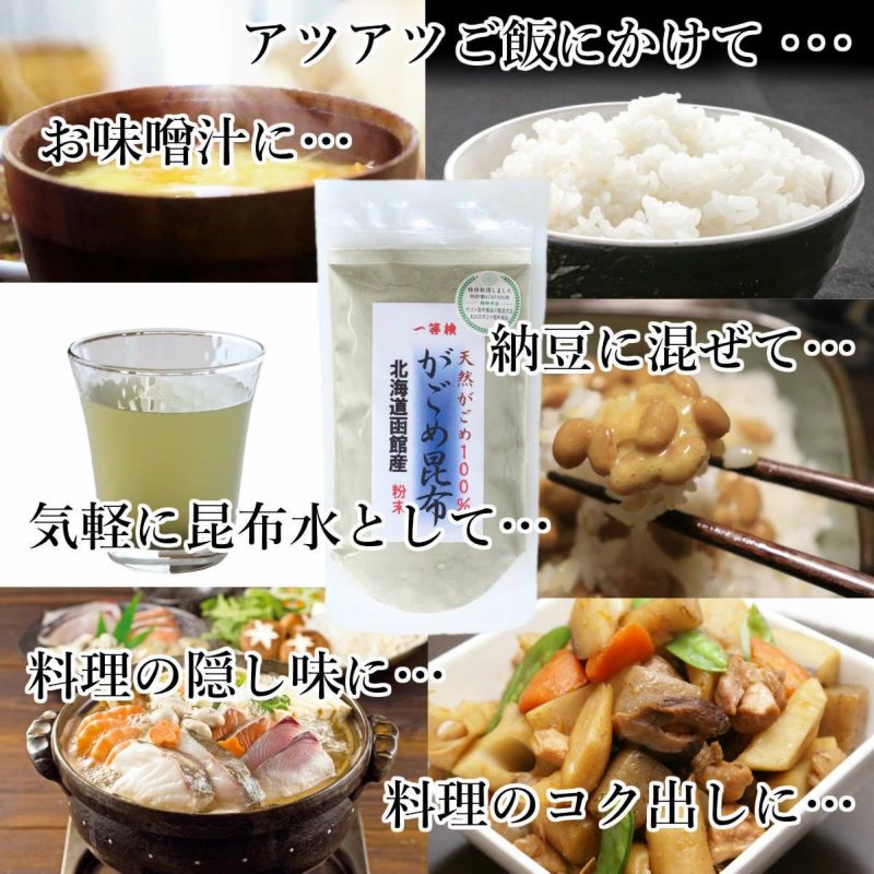 北海道函館で採れる納豆のようにネバネバした「がごめ昆布」を食べやすいように細かく刻み、微粒タイプにしました。 煮物や炒め物、サラダや麺類の具剤として幅広くご利用いただけます。 ※がごめ昆布とは、北海道南部の東海岸、津軽海峡の沿岸にのみ分布する昆布です。 昆布の表面にある模様がカゴの目に似ているところから「がごめ昆布」と呼ばれています。