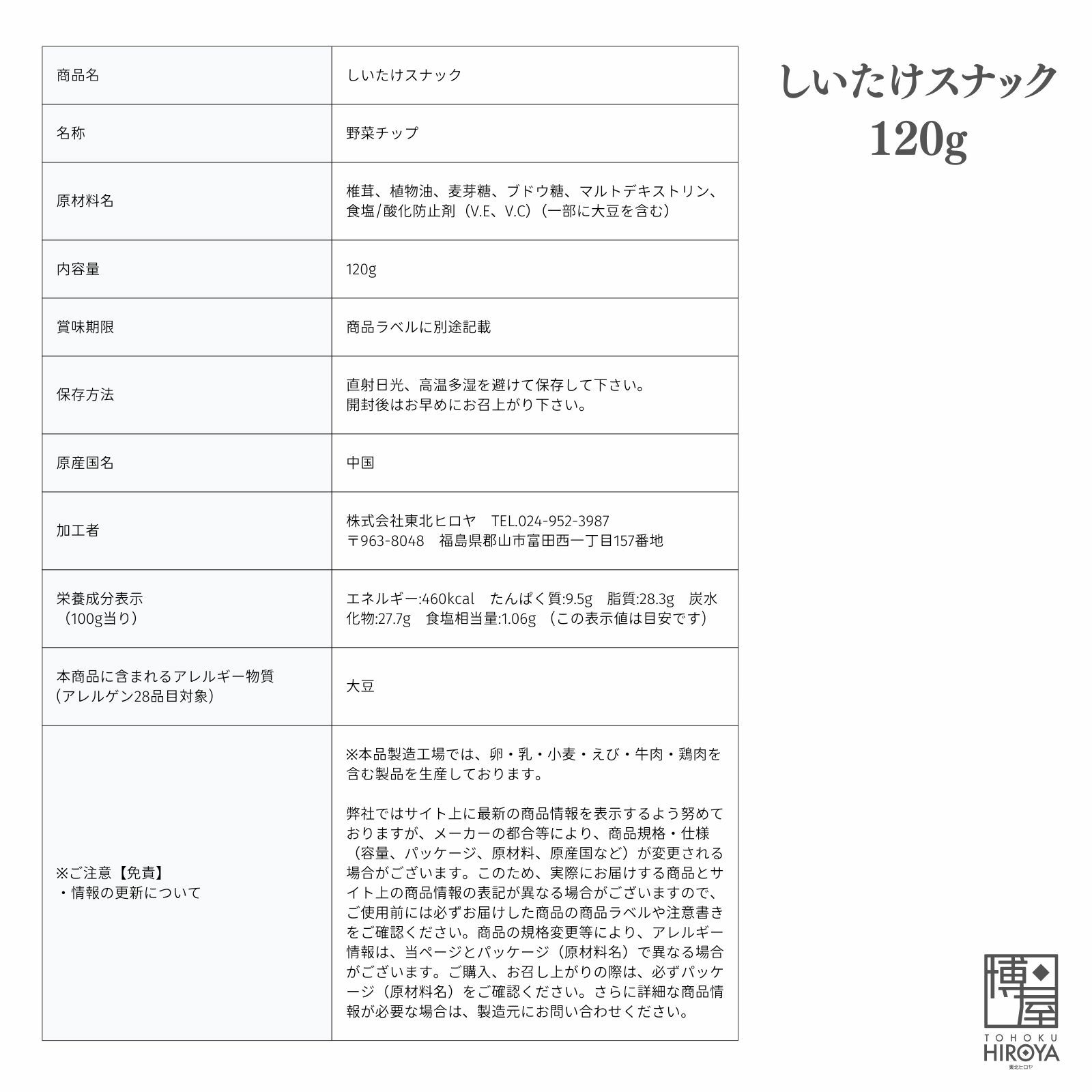 真空フライ製法で仕上げた、軽やかなサクサク食感がクセになる一品。 椎茸本来の美味しさと、ほどよい塩味が絶妙なバランス。 博屋 しいたけスナック 120g x1袋~ 送料無料 チャック付き保存袋 ¥ 998 税込 〜 ¥ 税込 詳細を見る お気に入り登録