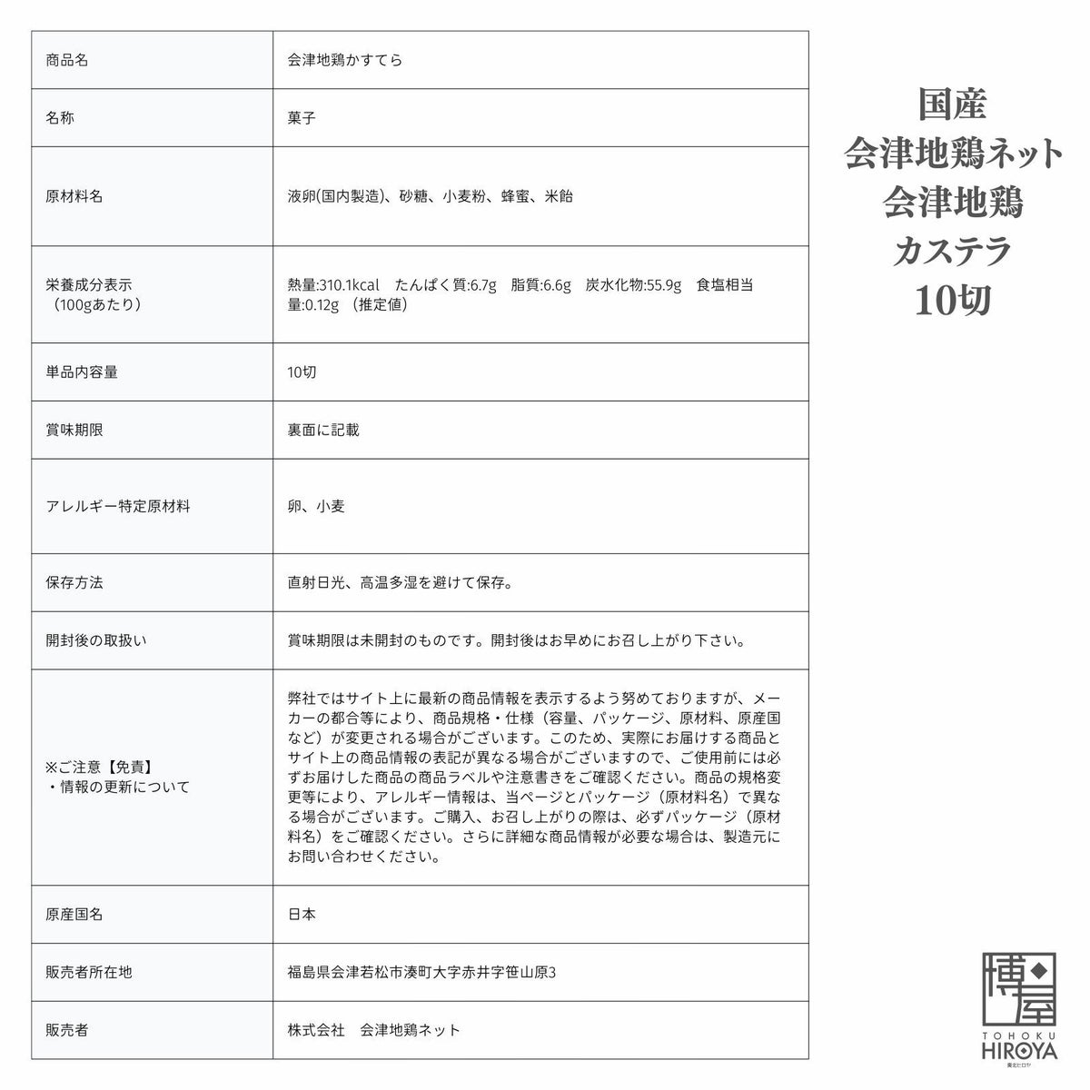 希少種・会津地鶏のたまごと、会津産蜂蜜を加えたブレンド蜂蜜を使用した、風味豊かな味わいのカステラです。 会津地鶏ネット 会津地鶏たまご かすていら カステラ 10切 x 1箱 国産 送料無料 ¥ 3,868 税込 カートに入れる お気に入り登録
