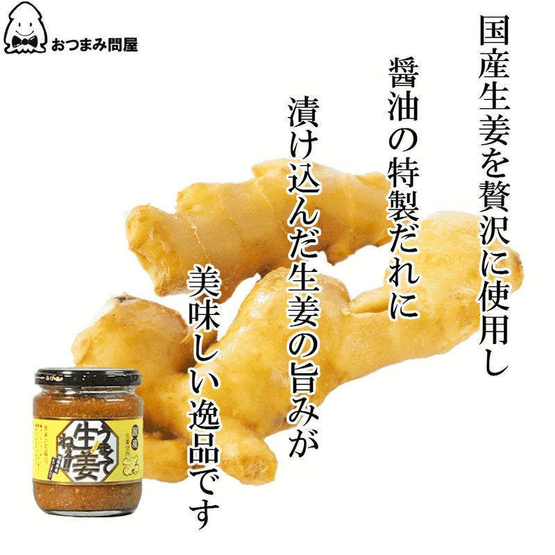 国産生姜を贅沢に使用し、醤油の特製ダレに漬け込んだ生姜の旨みが美味しい逸品です! ごはんのお供としてだけではなく、酒の肴・調味料としても絶品です。 焼肉、生姜焼き、冷奴、そうめんの薬味に!