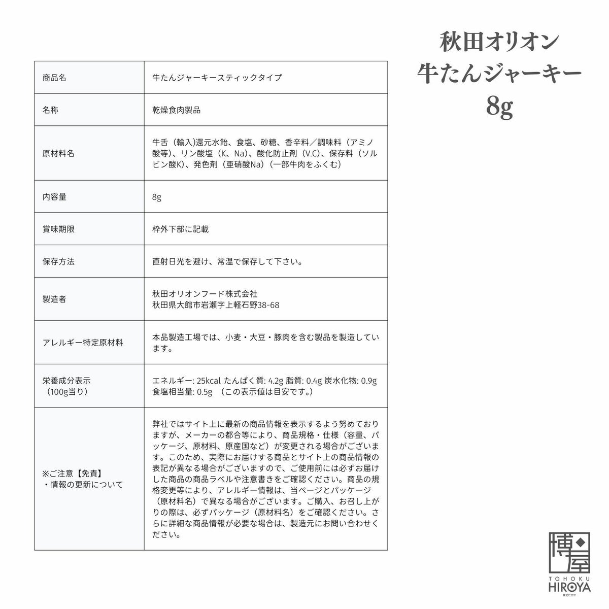 牛タンを塩ベースで味付けし、深みのある味と食感に仕上げました。食べやすいスティックタイプのビーフジャーキーです。 秋田オリオン 牛たんジャーキー (8g x 10個) x 1袋~ 送料無料 ¥ 1,398 税込 〜 ¥ 税込 詳細を見る お気に入り登録