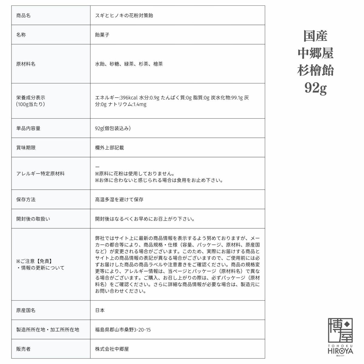 ほうじ茶をベースに杉茶とヒノキ茶を配合した杉檜茶。杉檜茶を抽出してから水飴と砂糖だけで練り上げ、昔ながらの飴に仕上げました。 国産 中郷屋 杉檜飴 92g x 1袋~ 国産 送料無料 ¥ 798 税込 〜 ¥ 税込 詳細を見る お気に入り登録