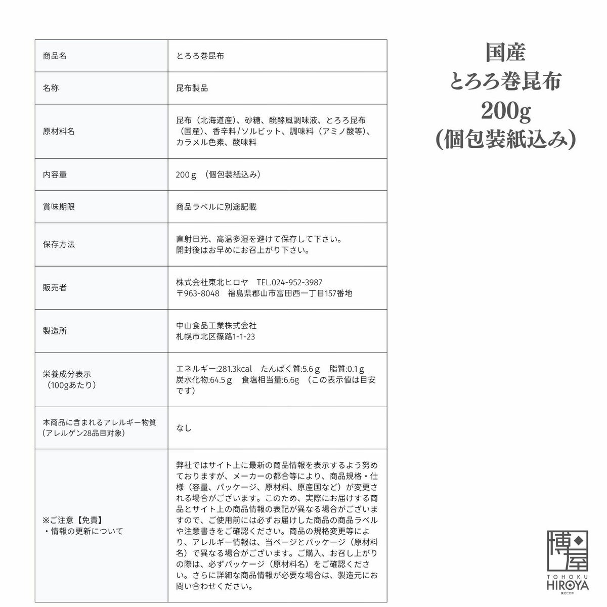 昆布の香りととろろの風味が楽しい、昆布珍味。厳選された北海道産の昆布で作ったとろろ昆布を、味付けした昆布に巻き付けました。 北海道産 とろろ巻昆布 200g x 1袋~ 国産 送料無料 チャック付き保存袋 ¥ 1,468 税込 〜 ¥ 税込 在庫切れ 詳細を見る お気に入り登録