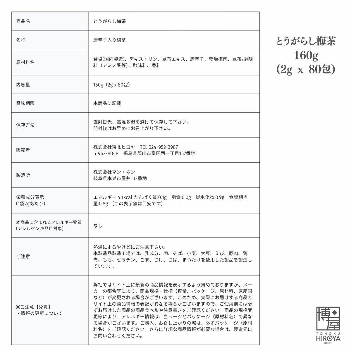 【カプサイシン効果】で体を温め、夏のクーラーや冬の寒さから守ります。ダイエット中や食欲のない時、パスタなどのお料理やお茶漬け、浅漬けなどにもおすすめです。 とうがらし梅茶 (2g x 80包) x 1袋~ 国産 送料無料 チャック付き保存袋 ¥ 2,098 税込 〜 ¥ 税込 詳細を見る お気に入り登録