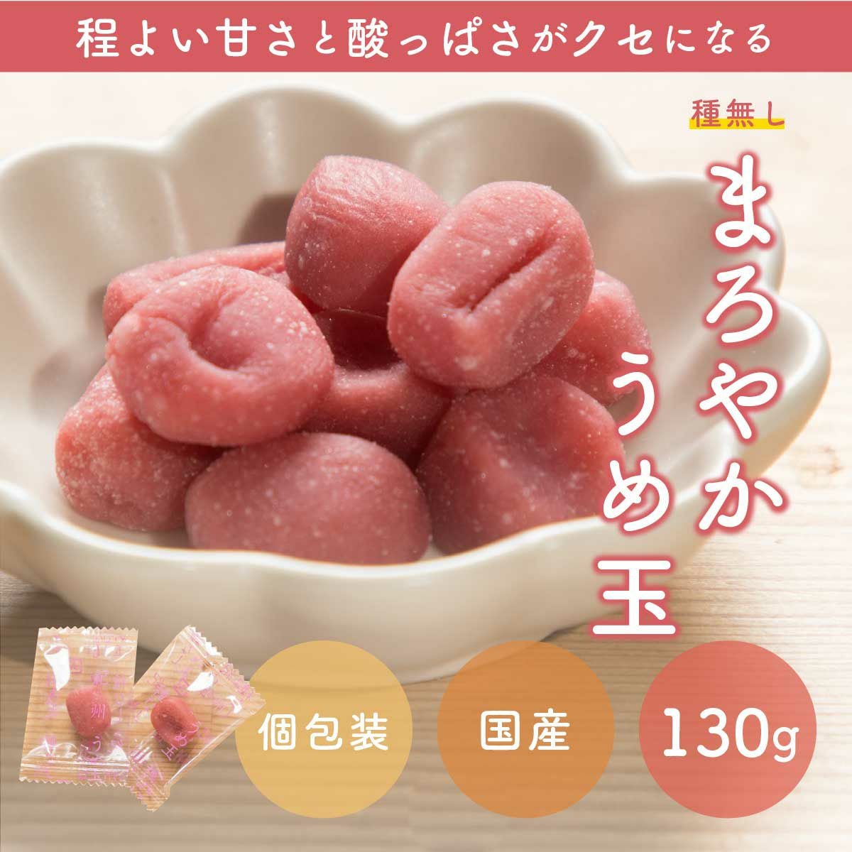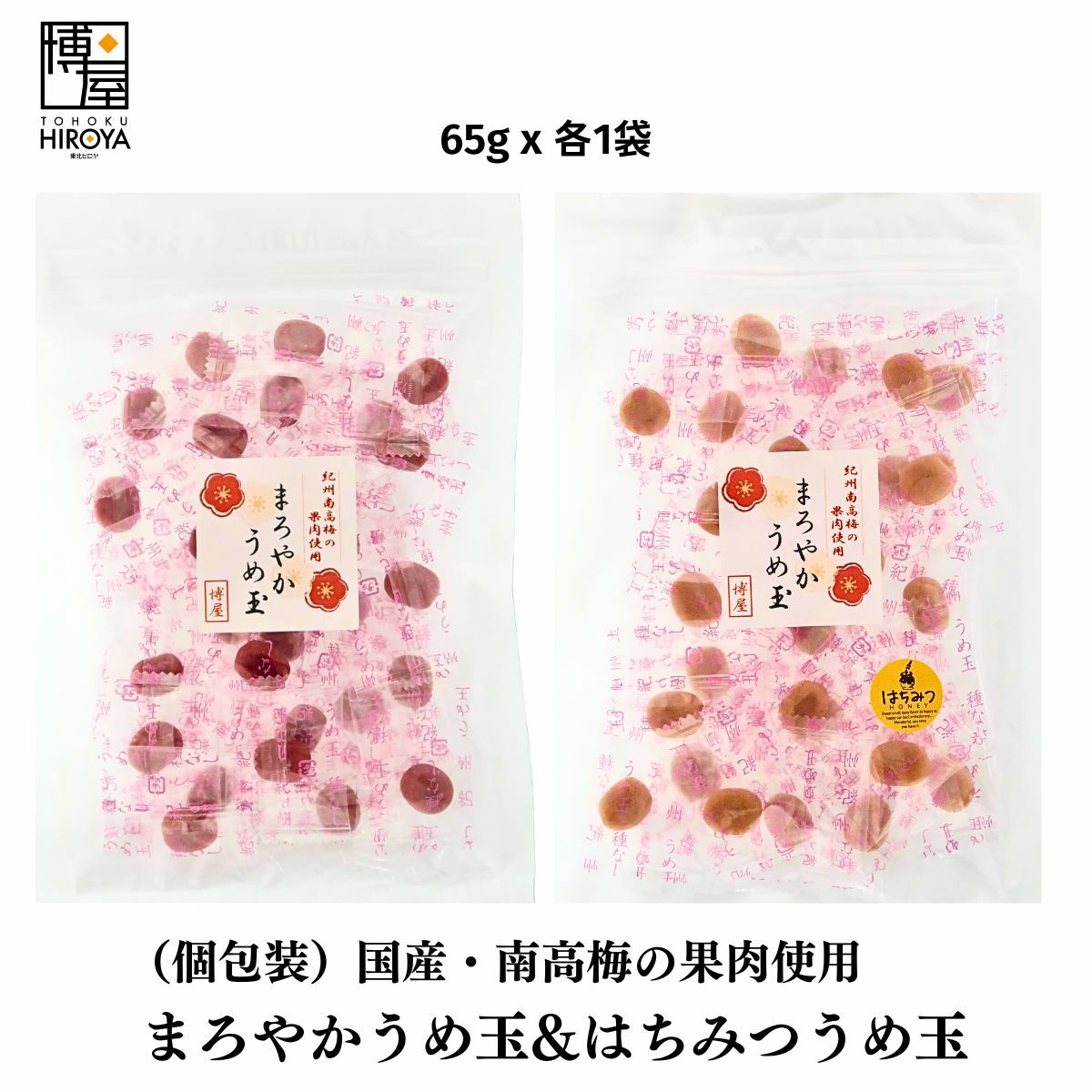 おやつに、お茶請けに。紀州南高梅の果肉を使用したねり梅を丸めた、やわらかいお菓子です。プレーンな梅味と甘口の蜂蜜味をセットにしました。 国産 梅玉 個包装 (うめ玉 65g x1袋 + はちみつうめ玉 65g x 1袋) x 1セット~ 国産 送料無料 チャック付き保存袋 ¥ 1,468 税込 〜 ¥ 税込 在庫切れ 詳細を見る お気に入り登録