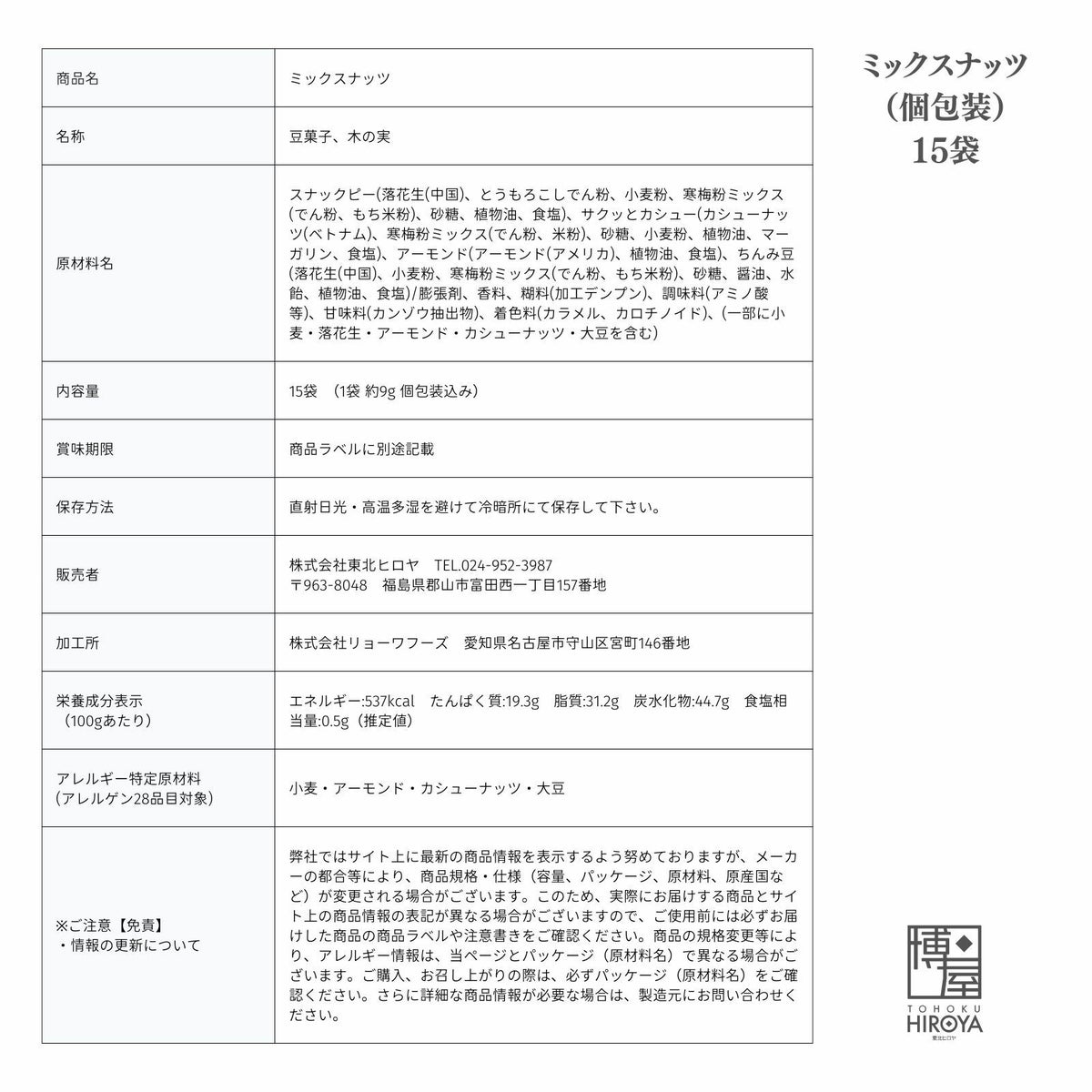 人気の4種類のナッツ・豆菓子をミックスし、手軽に食べやすく鮮度が保てるよう個包装にしました。毎日のおやつやつまみにもおすすめです。 ミックスナッツ (個包装) 15個 x 1袋~ 送料無料 チャック付き保存袋 ¥ 798 税込 〜 ¥ 税込 在庫切れ 詳細を見る お気に入り登録