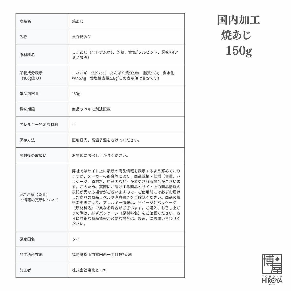 国内で製造・加工した、素材の味を大切にした香ばしいひとくちサイズの焼鯵。ビールのおつまみや、お子様のおやつにも◎ 国内加工 一口サイズ 焼あじ 150g x 1袋~ 送料無料 チャック付き保存袋 ¥ 1,198 税込 〜 ¥ 税込 詳細を見る お気に入り登録