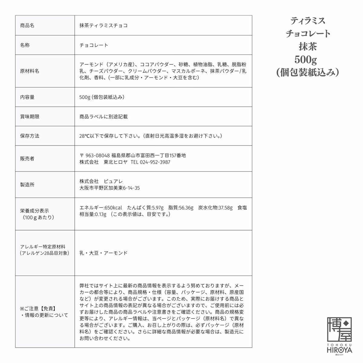 アーモンドをキャラメルコーティングし、マスカルポーネをふんだんに使ったクリームチーズで包んでココアパウダーで仕上げました。 【通常】ティラミス チョコレート 500g x 1袋~ 国産 送料無料 チャック付き保存袋 ¥ 3,698 税込 〜 ¥ 税込 詳細を見る お気に入り登録