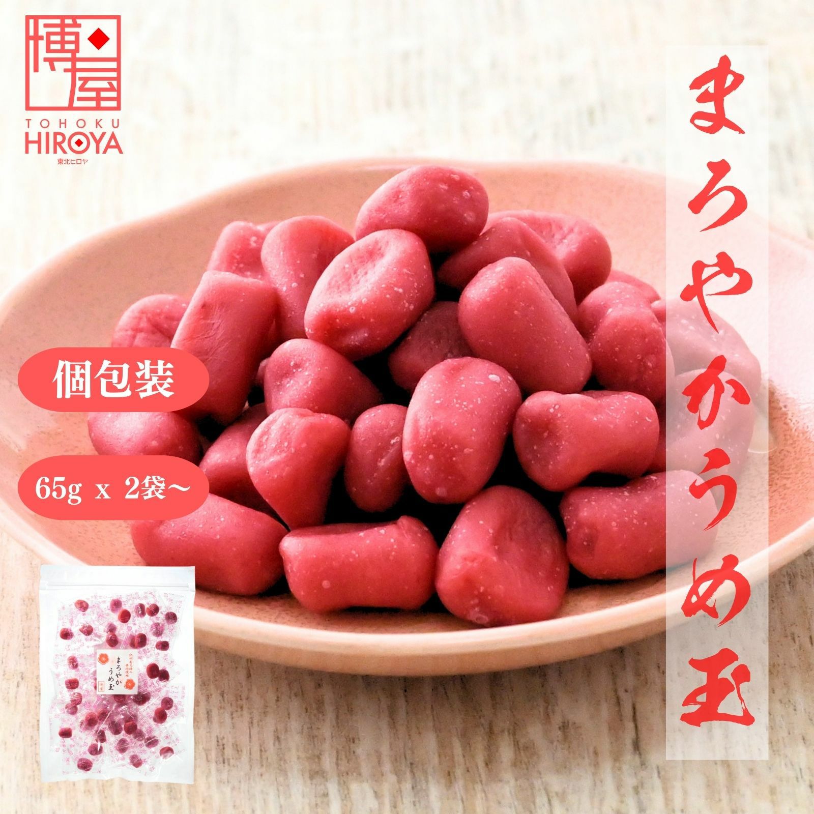 おやつに、お茶請けに。紀州南高梅の果肉を使用したねり梅を丸めた、やわらかいお菓子です。プレーンな梅味と甘口の蜂蜜味をセットにしました。 国産 梅玉 個包装 (うめ玉 65g x1袋 + はちみつうめ玉 65g x 1袋) x 1セット~ 国産 送料無料 チャック付き保存袋 ¥ 1,468 税込 〜 ¥ 税込 詳細を見る お気に入り登録