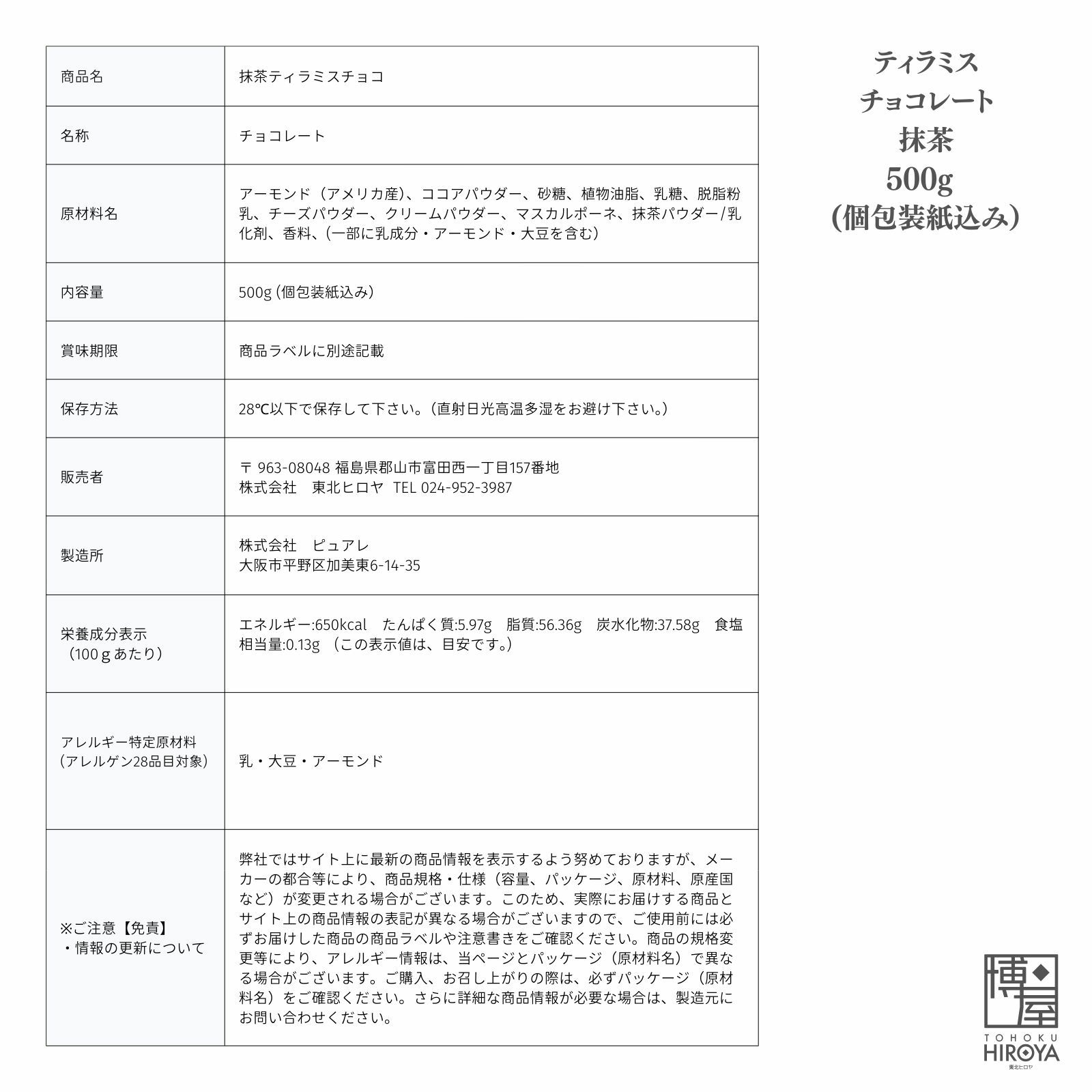 アーモンドをキャラメルコーティングし、マスカルポーネをふんだんに使ったクリームチーズで包んで抹茶で仕上げました。 【通常】ティラミス チョコレート 抹茶 500g x 1袋~ 国産 送料無料 チャック付き保存袋 ¥ 3,798 税込 〜 ¥ 税込 詳細を見る お気に入り登録