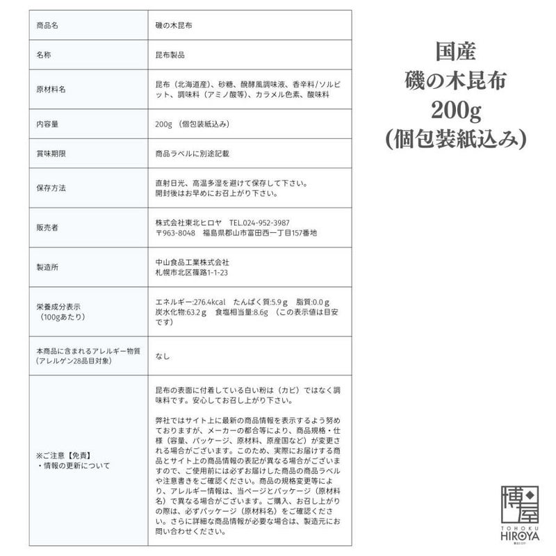 さお前昆布を原料にした、風味豊かな珍味。 磯の木昆布は、生育途中で海から引き上げたやわらかいさお前昆布を原料とした、磯の風味ゆたかな、自慢の珍味です。 お茶うけや育ち盛りのお子様のおやつにも最適です。