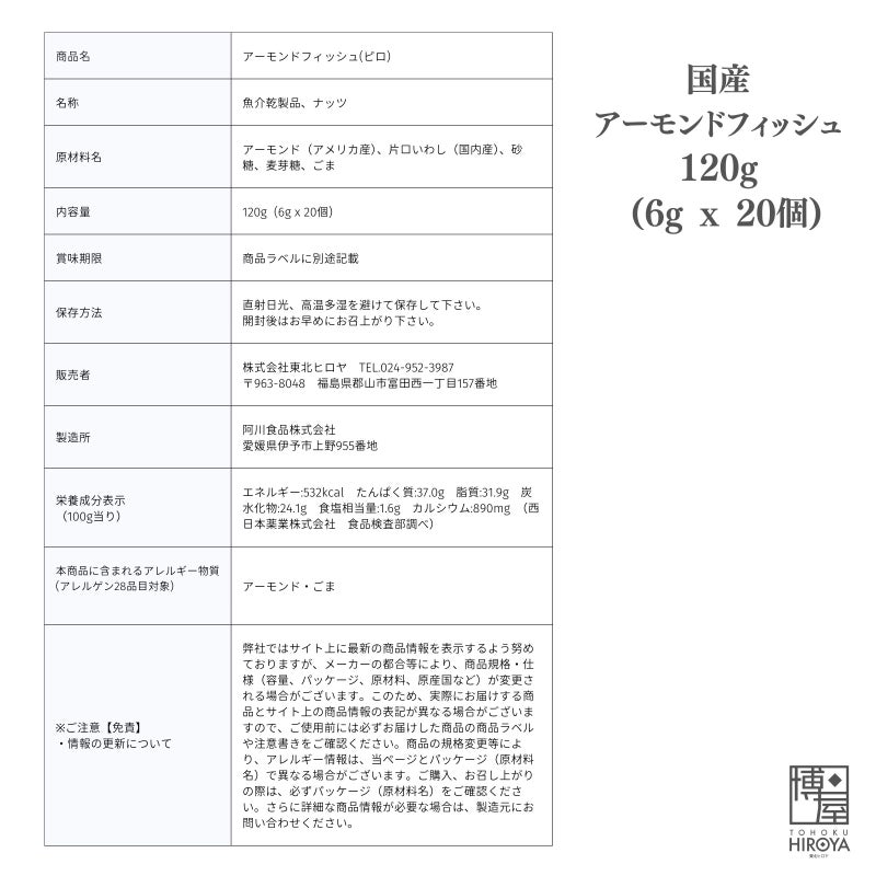 食品添加物不使用・無添加で、醤油、水飴を使わない素材本来の自然な味わい。 学校給食にも採用されている商品です。 国内産(瀬戸内海・九州)の片口いわしのみを使用し、アーモンドは無塩・無油・無添加・素焼きのアメリカ産を使用。 お子様からお年寄りまで、美味しく召し上がって頂けます。