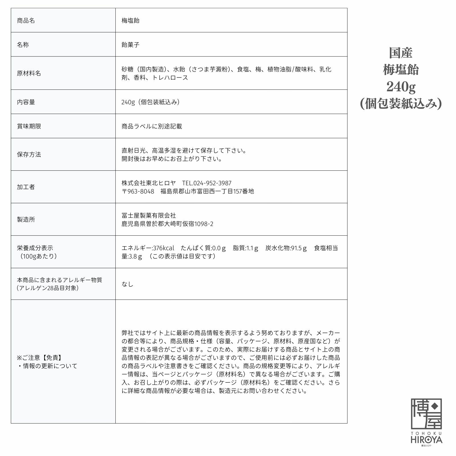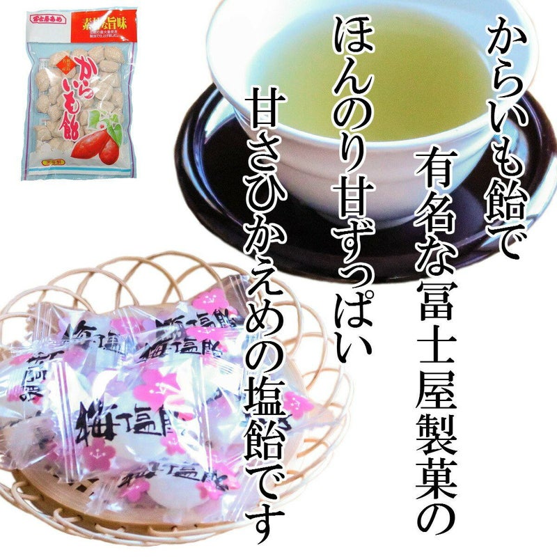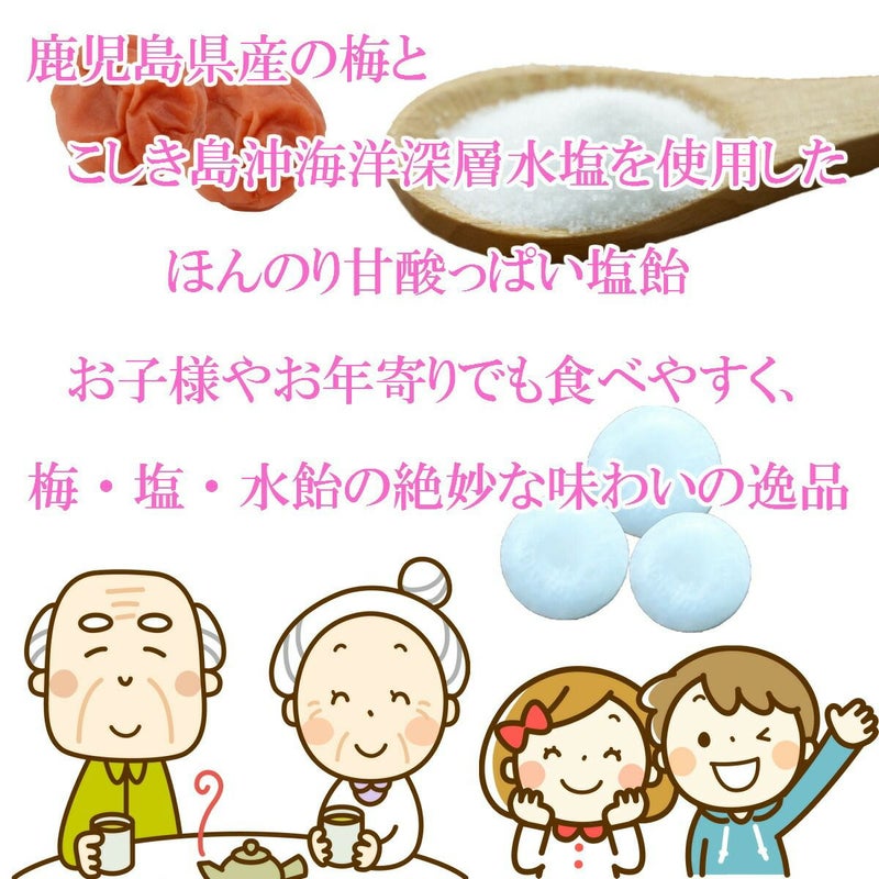 こしき島沖合いの海洋深層水から抽出した塩と、鹿児島県産の梅を使用した塩飴です。 夏場の塩分補給や、熱中症対策にもおすすめです。 鹿児島のからいも飴で有名な冨士屋製菓謹製。 甘すぎず、クセのない味わい。梅の甘酸っぱさと塩味の絶妙なバランスが取れた飴です。