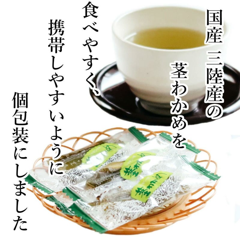 三陸産の茎わかめを食べやすいように個包装にしました。 ほど良い塩味と酸味、そしてシャキシャキとした食感が絶妙です! 低カロリーで食物繊維が豊富な茎わかめは、ダイエットにも最適です。ビールのおつまみに、お子様のおやつに、お茶うけに、ダイエットにと、ご賞味ください!