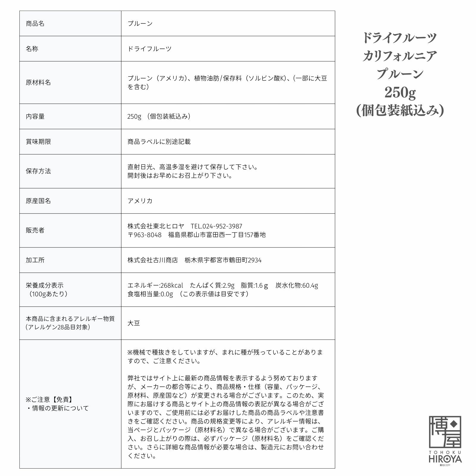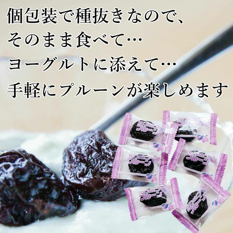 自然が育んだヘルシーフルーツ カリフォルニアの陽差しをいっぱい浴びて育った、高繊維のアルカリ性食品です。 美容と健康のためにどうぞ! ※個包装でチャック付き、携帯・保存も楽々。 ※機械で種抜きをしていますが、まれに種が残っていることがありますので、ご注意ください。 ※プルーンは緩下作用がありますので食べすぎないようご注意ください。 ※表面に白い粉のような物がついていることがありますが、果糖が結晶化したものですので安心してお召しあがりください。