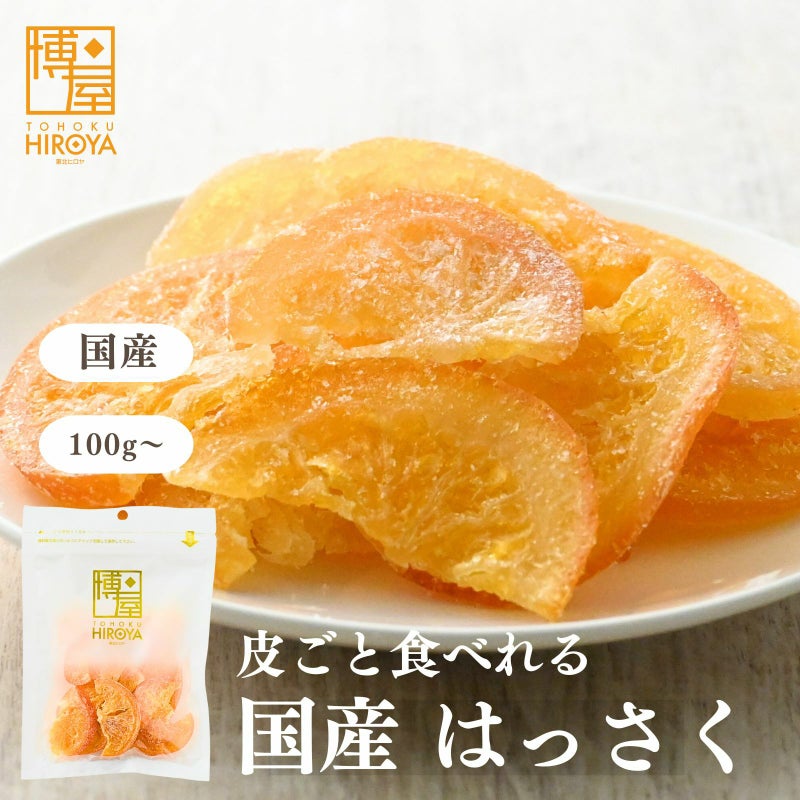 さわやかな甘さとほのかな苦みが特徴の国産はっさくを 食べやすいサイズのドライフルーツにしました。