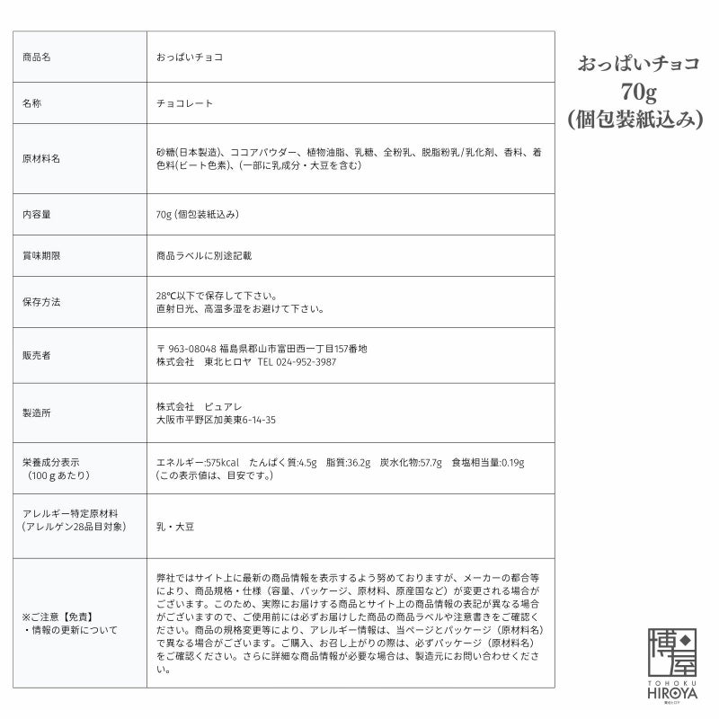 ピュアレ おっぱいチョコ 70g入り