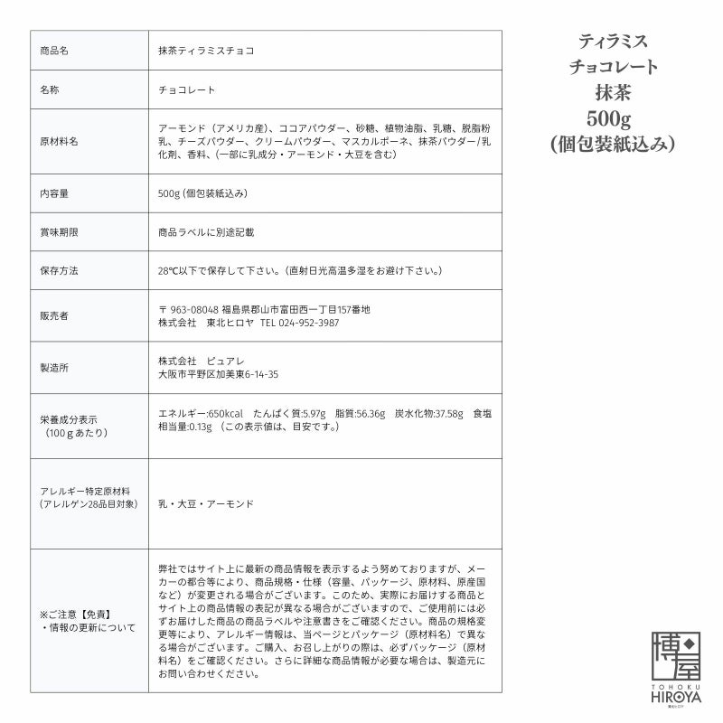 アーモンドをキャラメルコーティングし、マスカルポーネをふんだんに使ったクリームチーズで包んでココアパウダーで仕上げました。 【クール便】ティラミス チョコレート 抹茶 100g x 1袋~