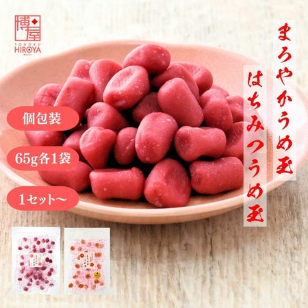 国産 梅玉 個包装 (うめ玉 65g x1袋 + はちみつうめ玉 65g x 1袋) x 1セット~のレビューを書く