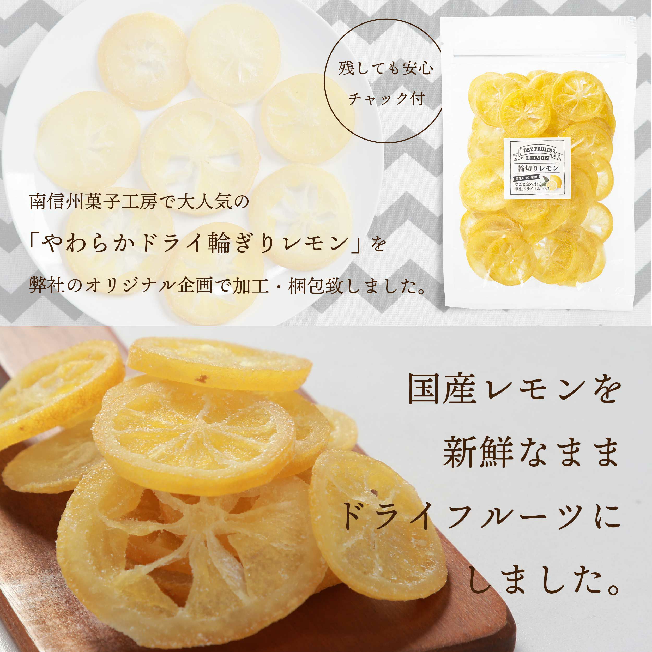 南信州菓子工房原料使用。酸っぱさ控えめ、半生でやわらかい新食感です。防腐剤・ワックス不使用の新鮮な国産レモンを使用しているので、皮ごと安心してお楽しみいただけます。 国産 輪切りレモン 200g x 1袋~ 国産 送料無料 チャック付き保存袋 ¥ 1,998 税込 〜 ¥ 税込 詳細を見る お気に入り登録