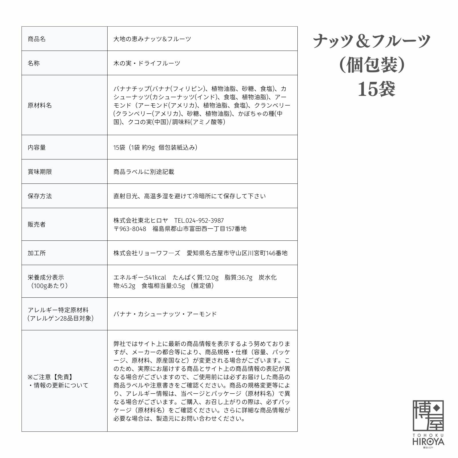 人気の4種類のナッツ・豆菓子をミックスし、手軽に食べやすく鮮度が保てるよう個包装にしました。毎日のおやつやつまみにもおすすめです。 ミックスナッツ (個包装) 15個 x 1袋~ 送料無料 チャック付き保存袋 ¥ 798 税込 〜 ¥ 税込 詳細を見る お気に入り登録