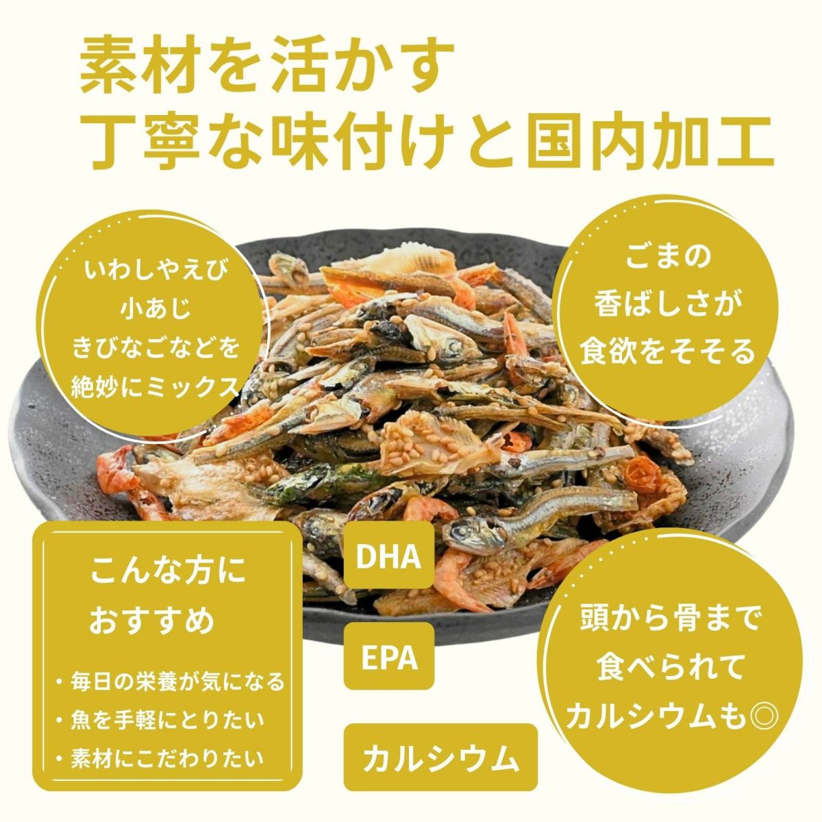 瀬戸内や九州産の小さないわしを煮干しにし、炒りごまをたっぷりまぶした、風味豊かな仕上がりです。 国産 味付き 胡麻いわし 100g x 1袋 国産 送料無料 チャック付き保存袋 ¥ 998 税込 〜 ¥ 税込 詳細を見る お気に入り登録