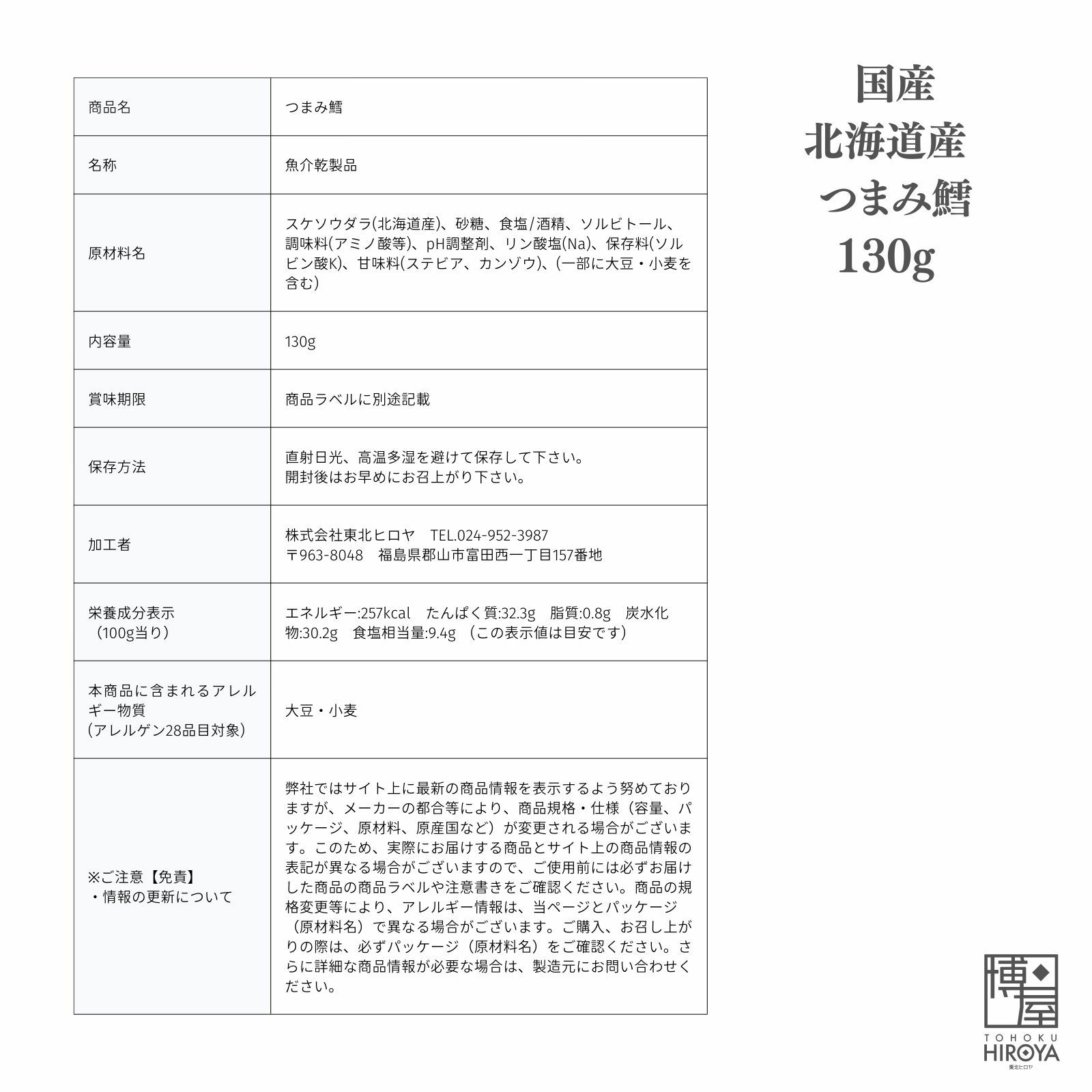 北海道で水揚げされたすけそう鱈を原料に、風味豊かにやわらかく仕上げました。 国産 北海道産 つまみ鱈 130g x 1袋~ 国産 送料無料 チャック付き保存袋 ¥ 1,198 税込 〜 ¥ 税込 詳細を見る お気に入り登録